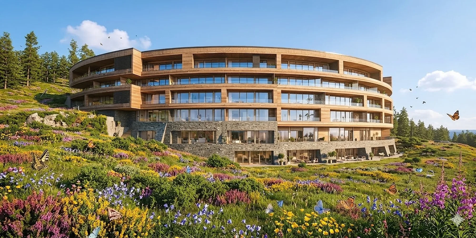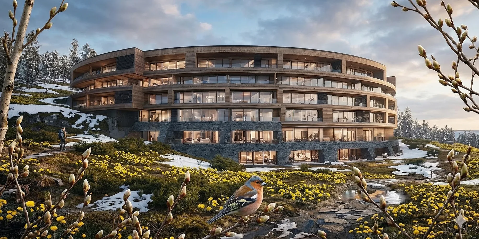 På 700 meters höjd i Ullådalen i Åre växer Ullådalsstugan fram – ett nytt fjällresidens där modern arkitektur möter jämtländsk vildmark. Byggnadens karakteristiska solfjäderform öppnar varje våningsplan mot fjället och låter ljus, vyer och landskap bli en naturlig del av boendet. Här börjar skidåkningen utanför dörren och fjällvärlden breder ut sig i alla riktningar. Ett boende där naturen alltid är nära och livet i fjällen kan upplevas fullt ut – året runt.